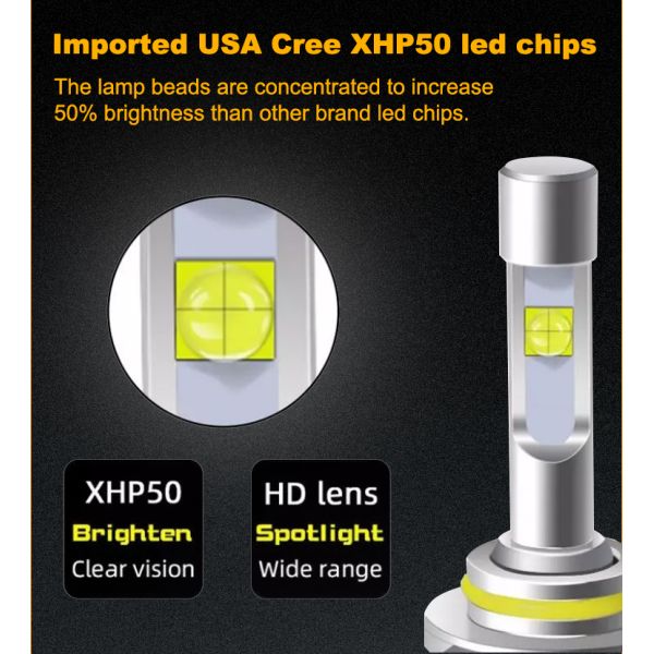 Copper Belt P50 Car Headlight Bulbs with CREE XHP50 LED Chips, H1 H3 H4 H7 H11 9005 9006